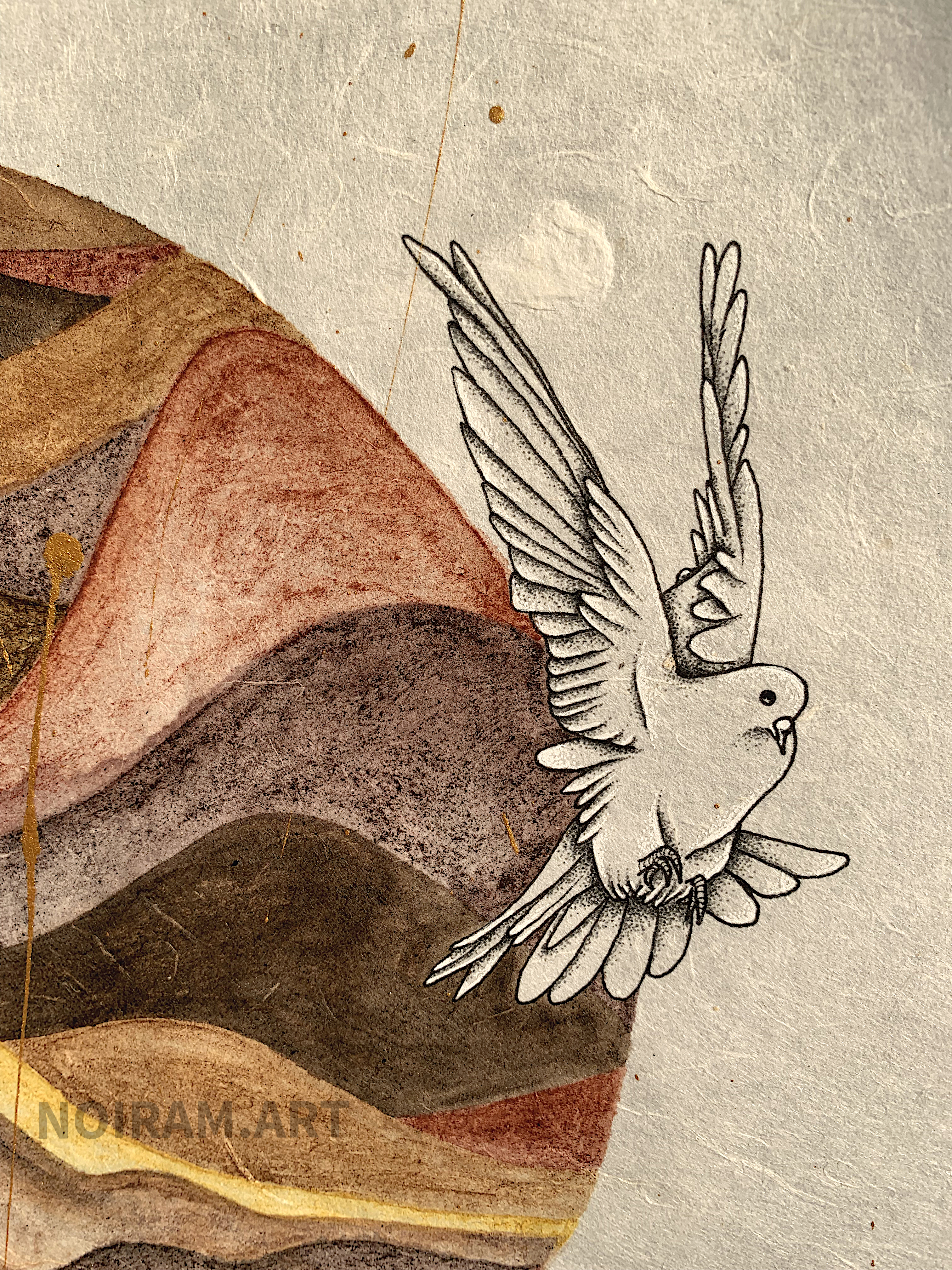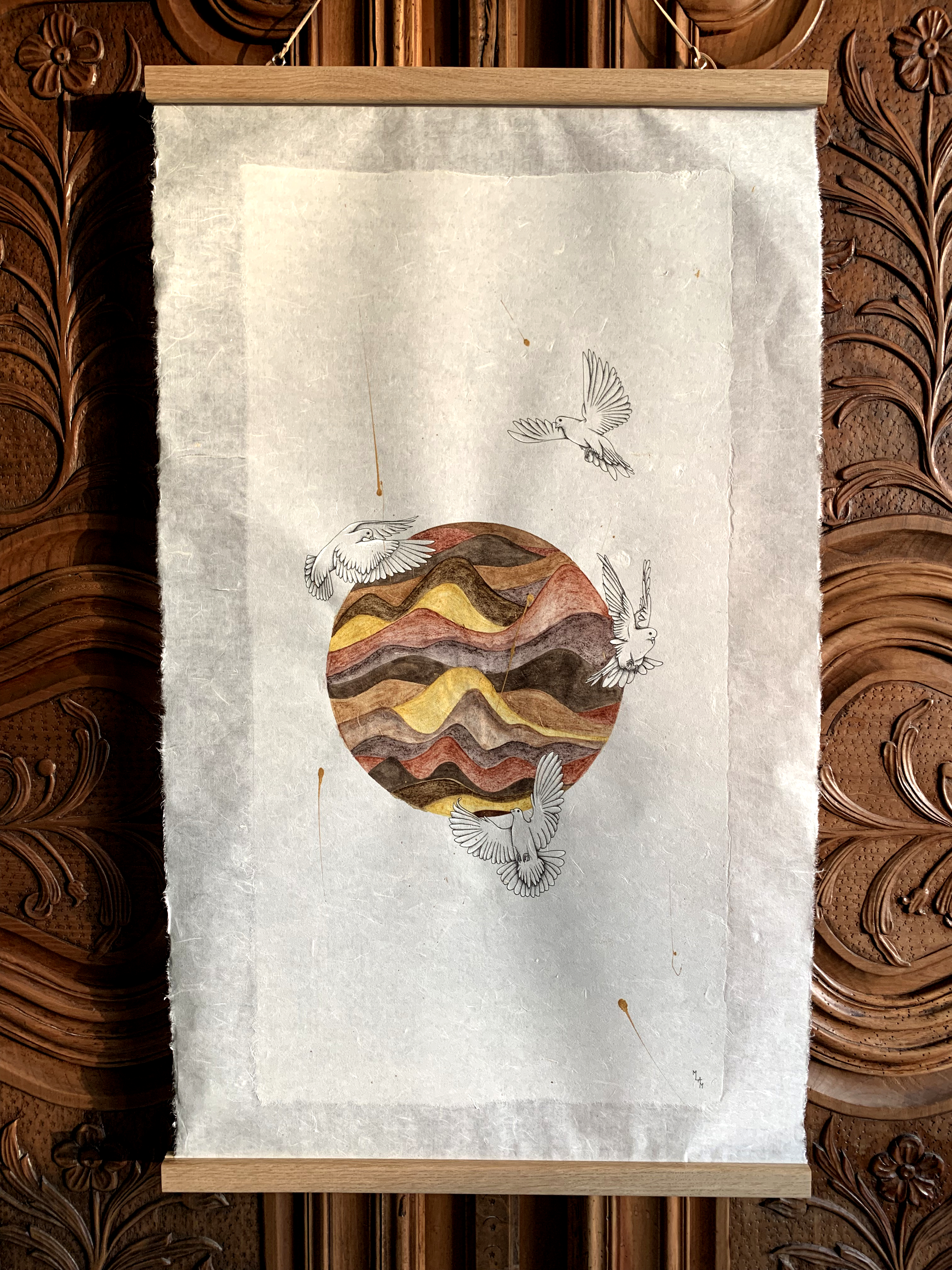 Aquarelles végétales et minérales « home made », stylo et acrylique sur papier japon