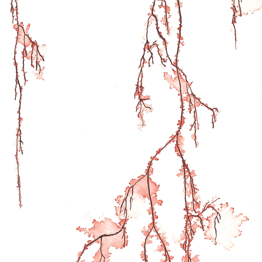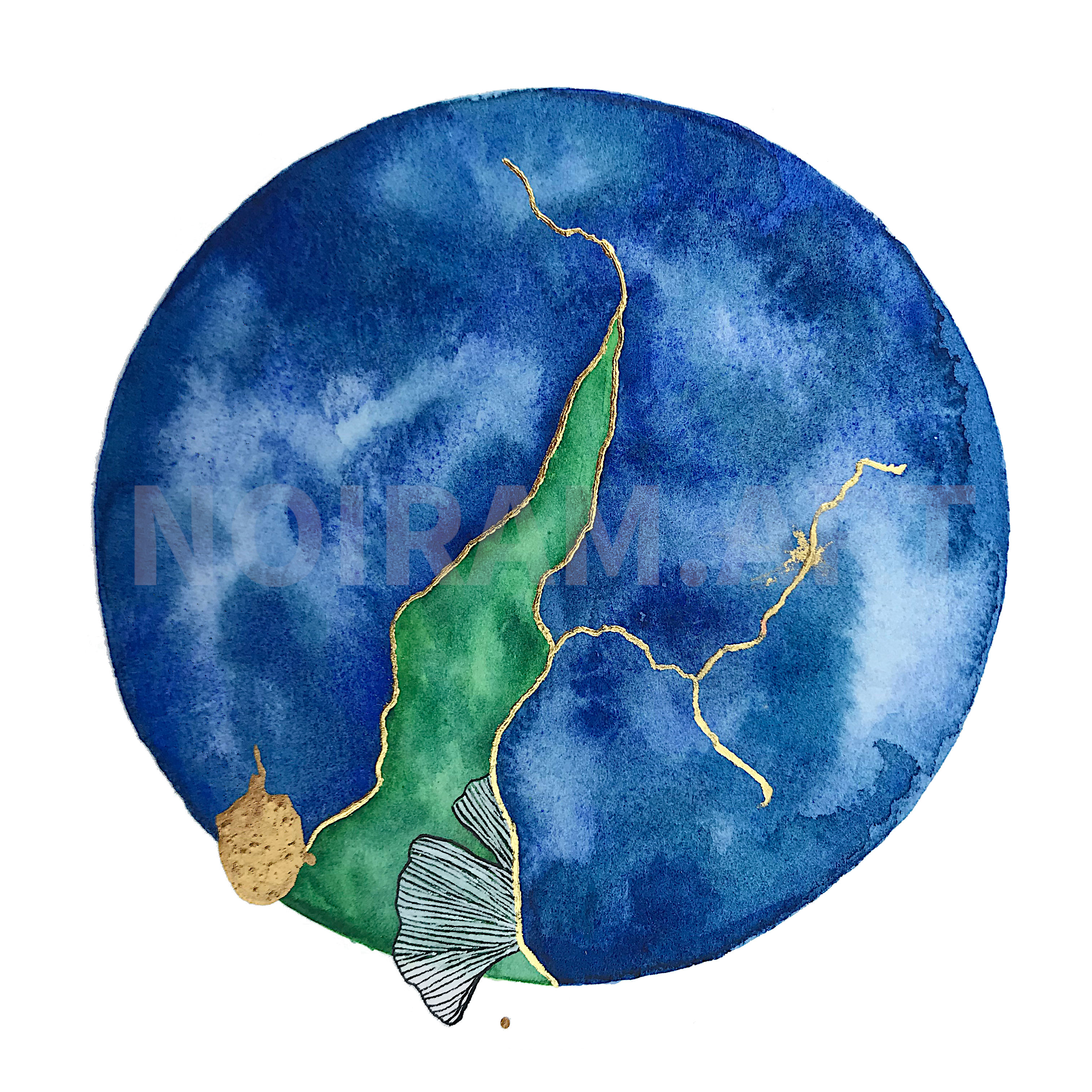 Une première pour moi : une peinture entièrement réalisée à partir d’aquarelles végétales et minérales fabriquées de A à Z par moi-même. J’ai extrait les pigments de diverses plantes afin de préparer mes propres aquarelles.