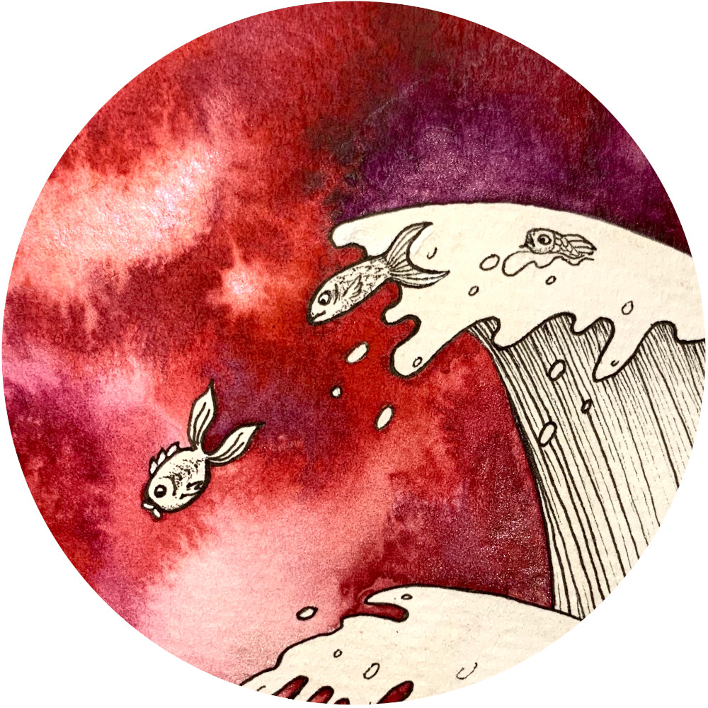 La reproduction du tableau Sous la surface sur papier Fine Art est disponible en exemplaires limités au shop. Les dorures ont été effectuée à la main par moi-même et sont en or véritable.