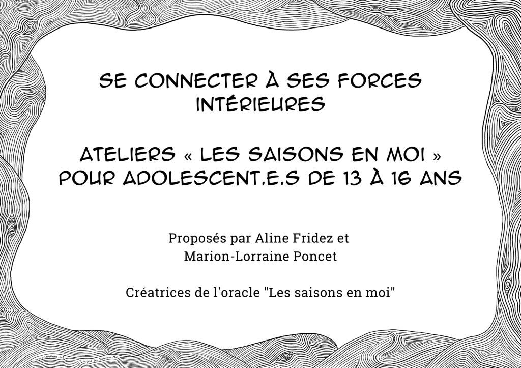 Aline Fridez et Marion-Lorraine Poncet proposent aux adolescent.e.s de 10,5 à 16 ans, des ateliers pour se reconnecter à leurs saisons intérieures et aborder avec sérénité les défis de la vie :