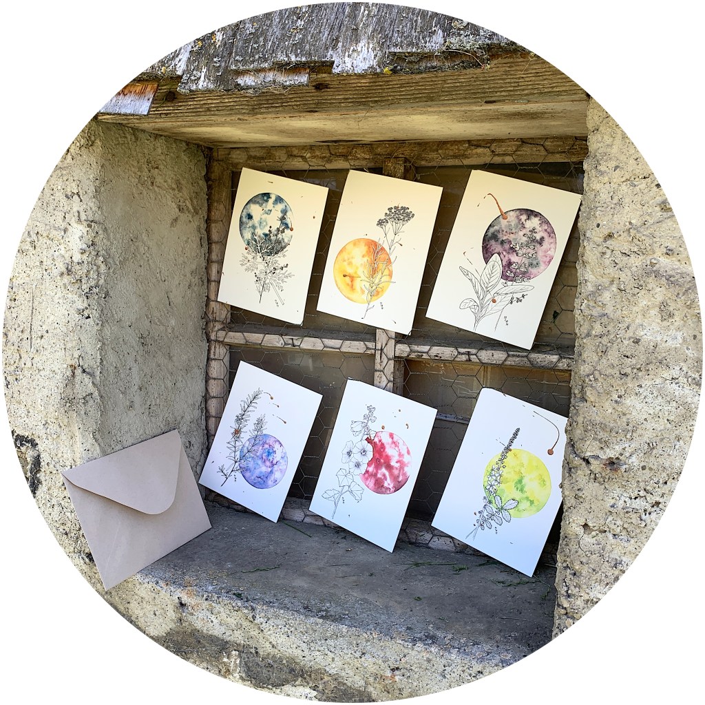 J’ai la joie de vous dévoiler la concrétisation d’un projet qui a muri durant le confinement : sept de mes peintures sont à présent disponible sous forme de cartes postales ! Idéales pour écrire un mot doux ou une tendre pensées, elles apprécient même être encadrées et mises au mur…