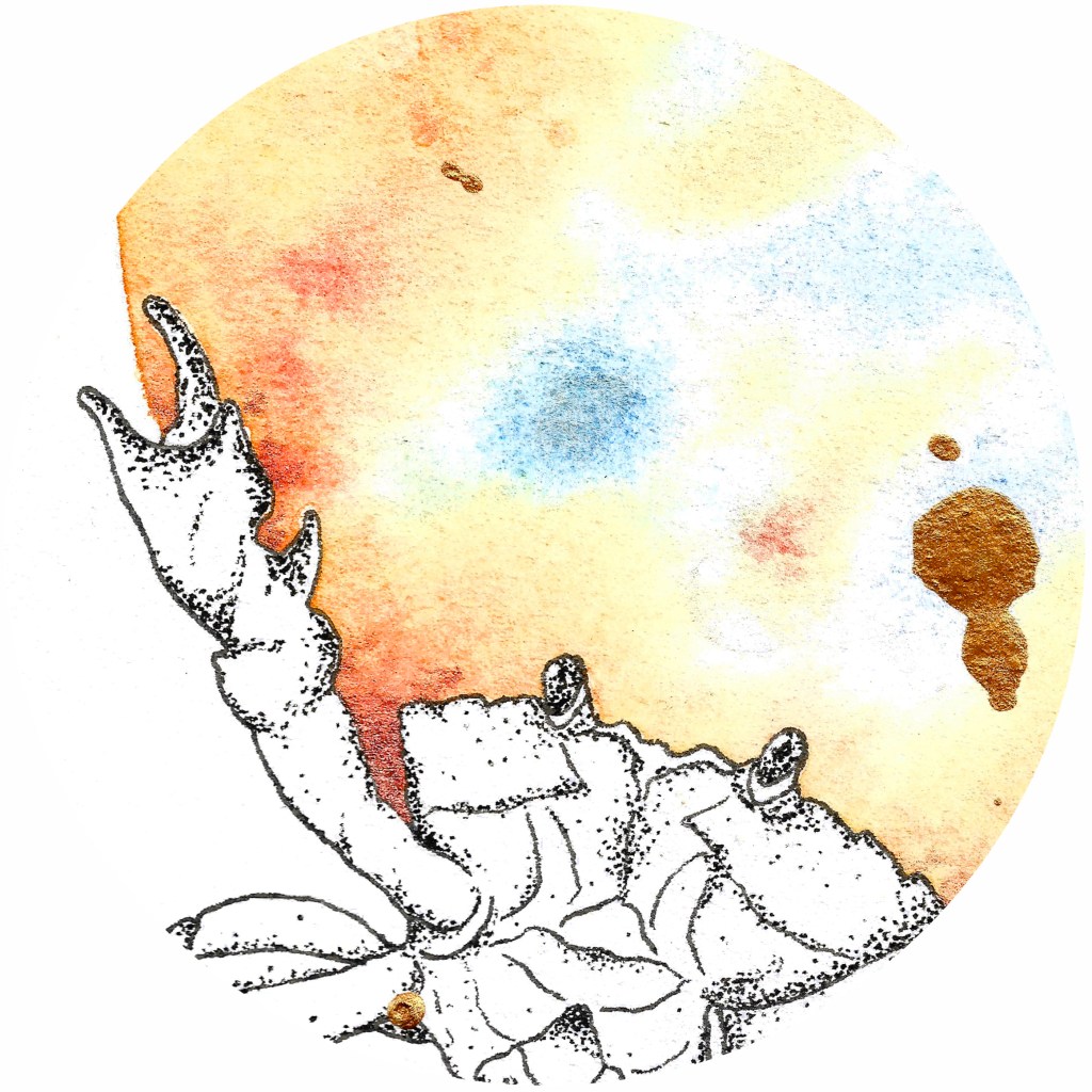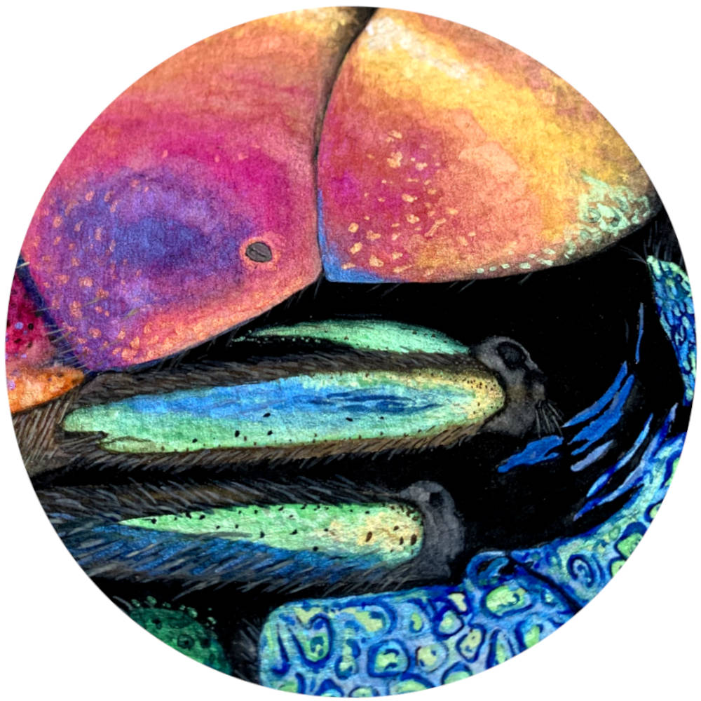 Et il y a des coïncidences qui font sourire : en cherchant un titre à cette peinture, j’ai appris que ce prénom, qui signifie la vie, en grec, est aussi le nom que les scientifiques donnent au stade larvaire des crabes.