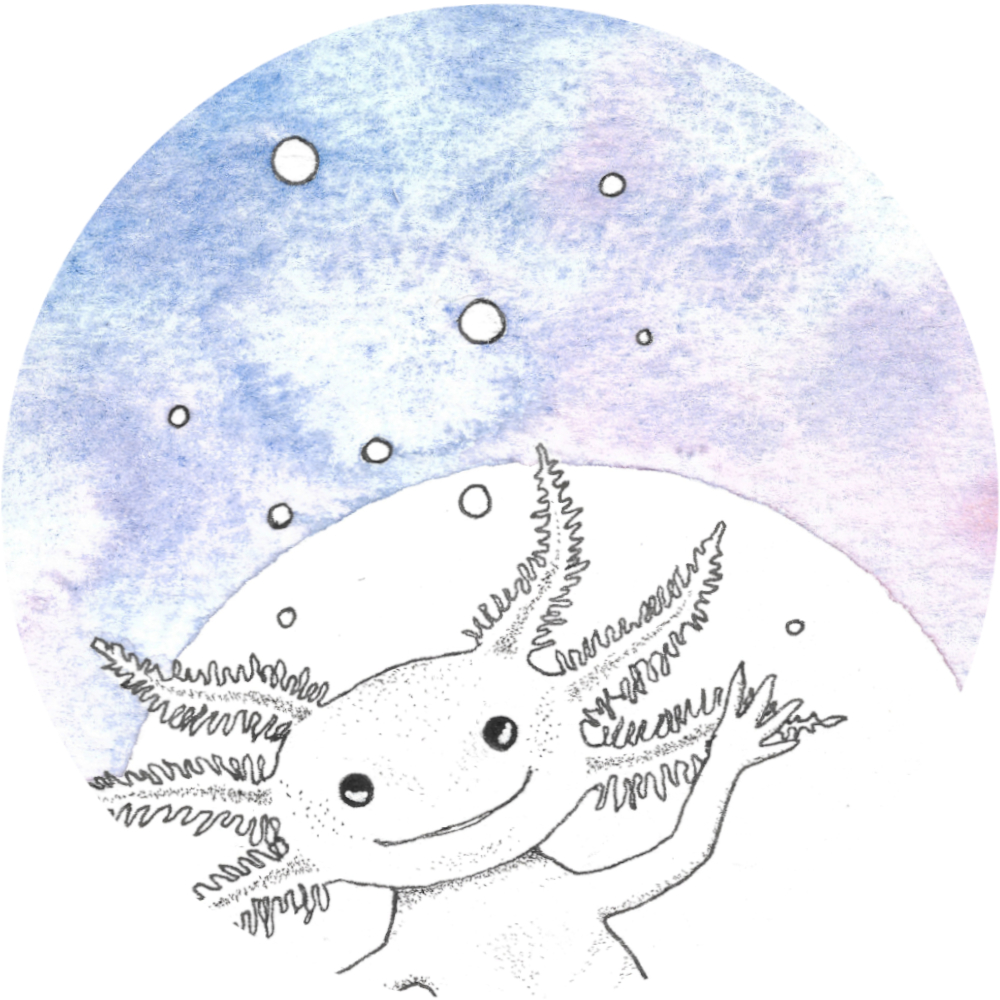 Un petit axolotl dans sa bulle pour une jeune fille amatrice de mondes fantastiques et des créatures qui les peuplent…
