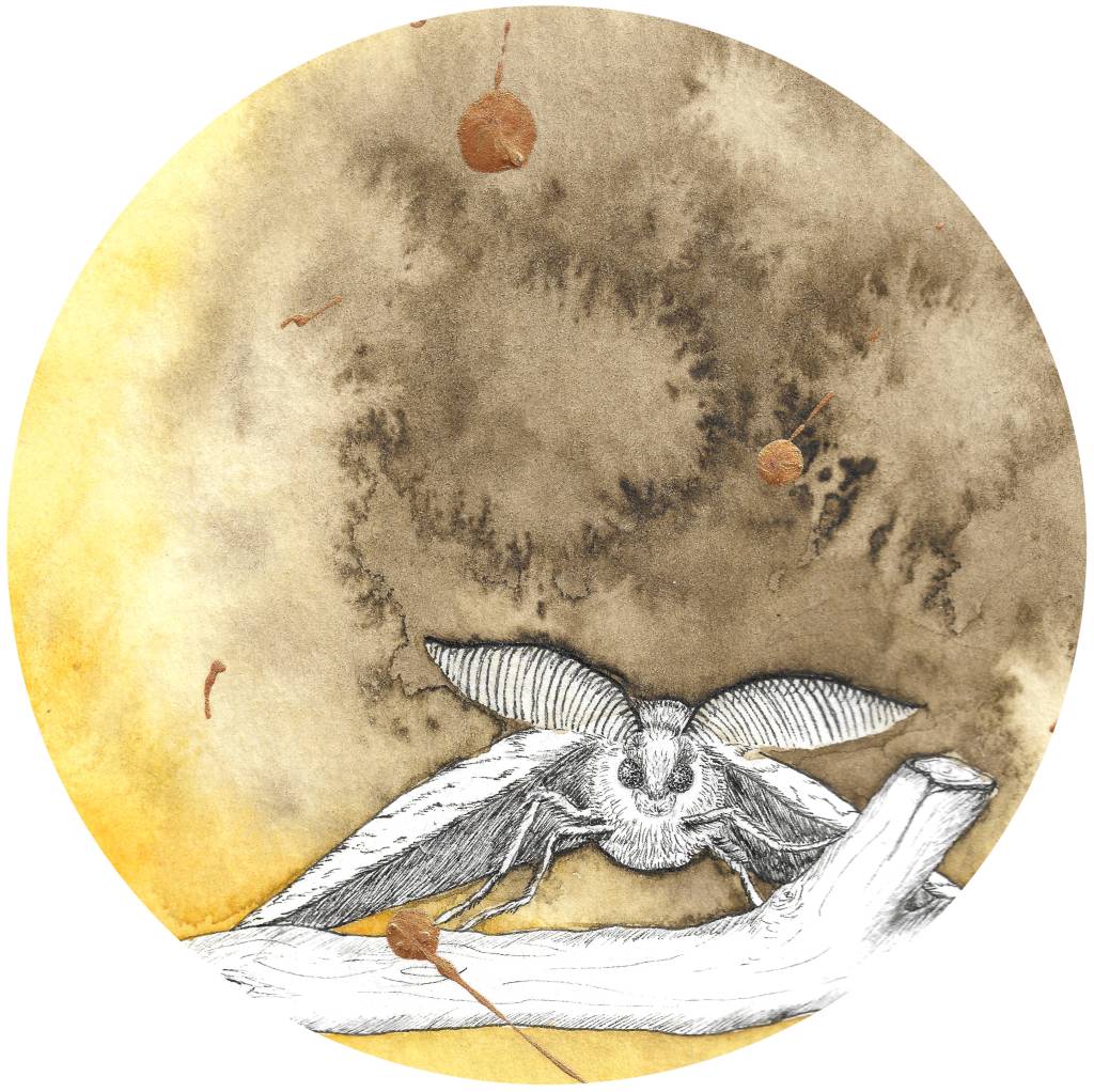 Pour créer l’illustration de cette serviette menstruelle lavable, je me suis inspirée des cycles de la nature. Laissons notre imaginaire s’envoler pendant cette période du mois où notre rythme ralentit naturellement pour nous offrir le temps de rêver.