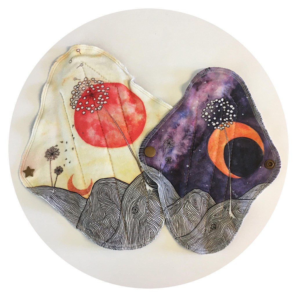 Pour créer l’illustration de cette serviette menstruelle lavable, je me suis inspirée des cycles de la nature. Laissons notre imaginaire s’envoler pendant cette période du mois où notre rythme ralentit naturellement pour nous offrir le temps de rêver.