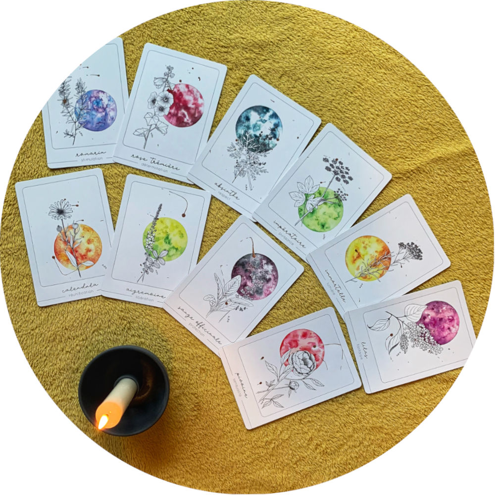 Je fais partie des 9 artistes participants au magnifique projet d’oracle de Catherine Dubosson. Il est contient de 79 cartes pour composé votre tisane-intuitive et un livret sur les vertus de plantes et leur message caché.