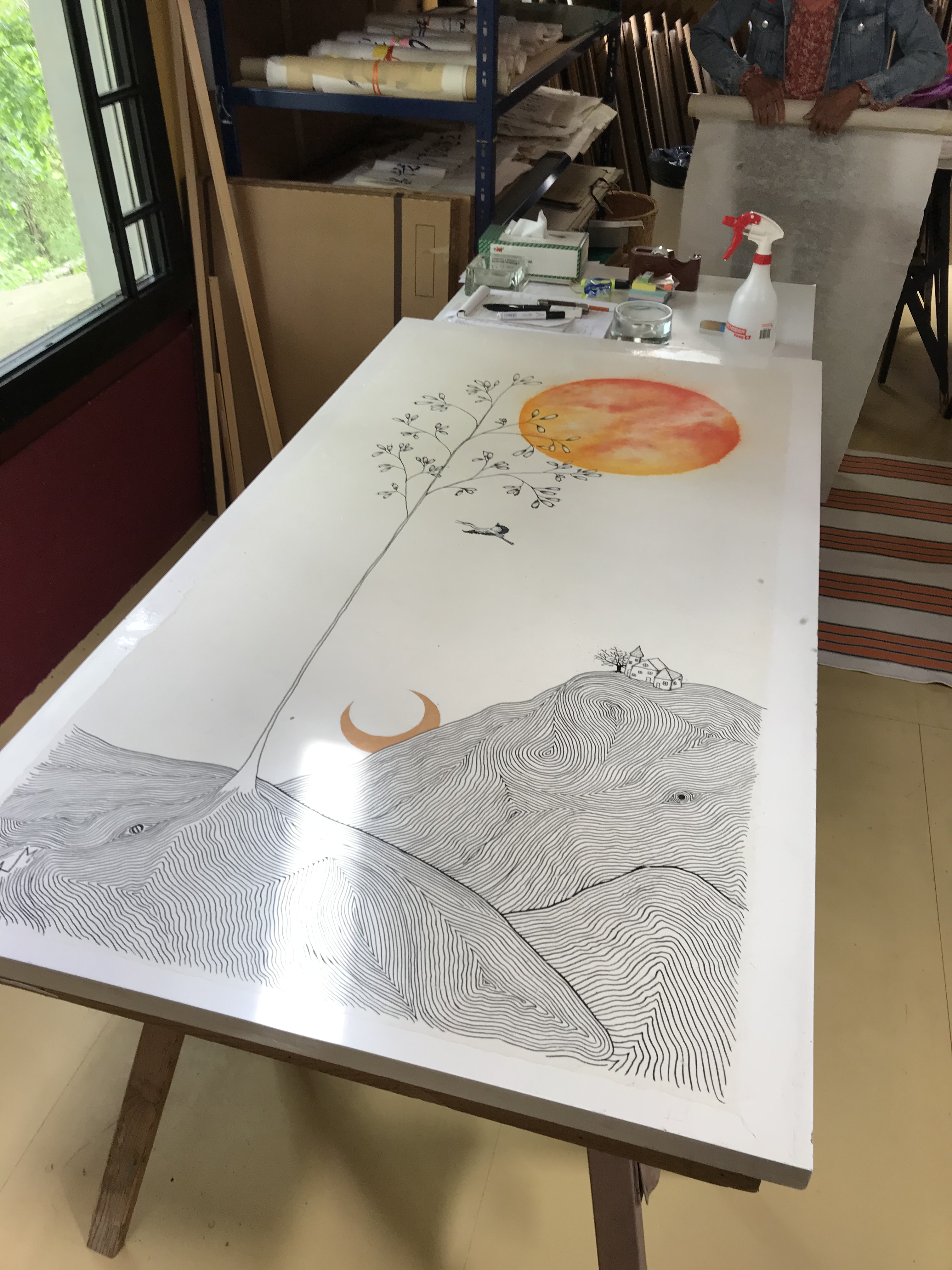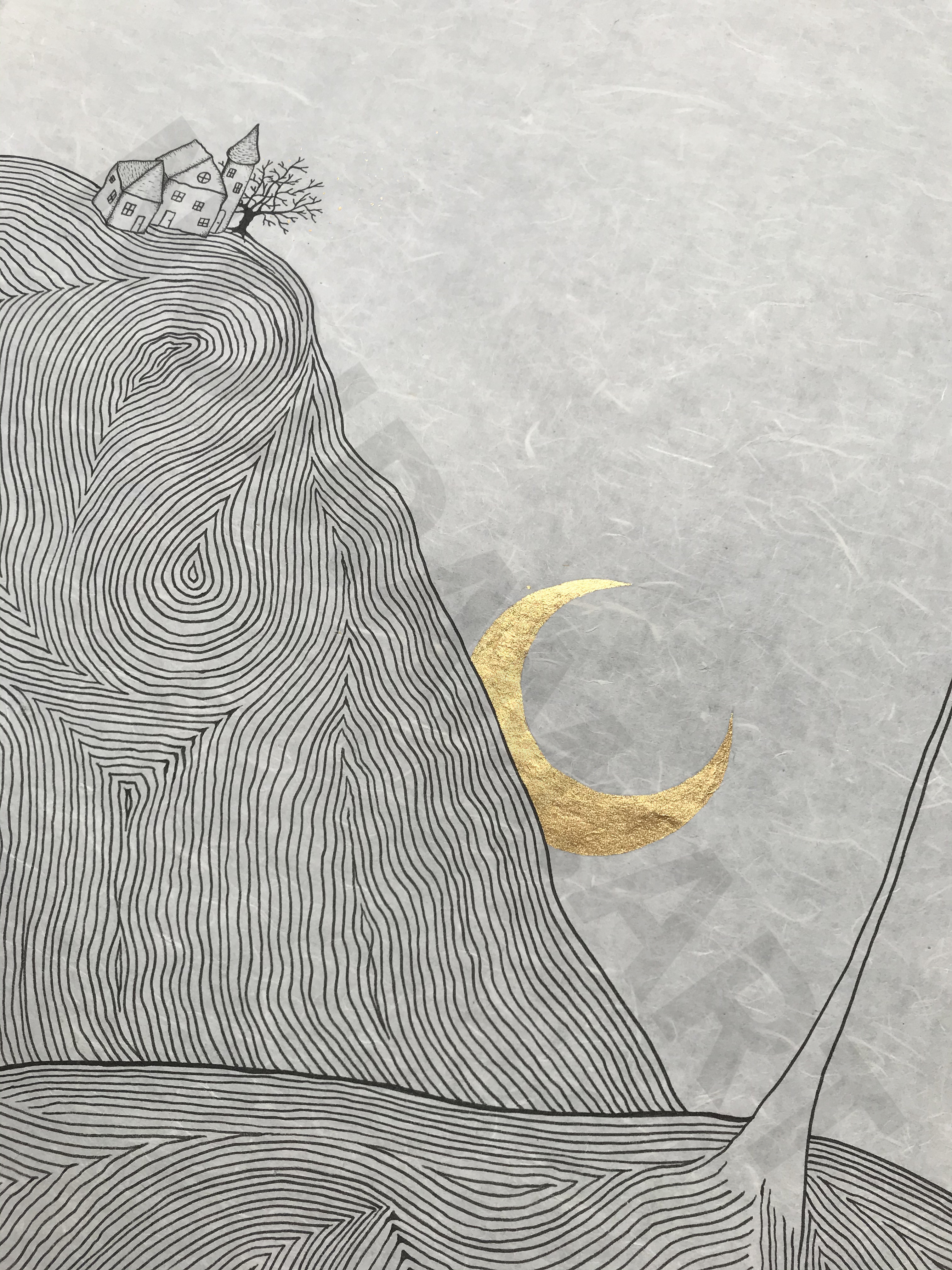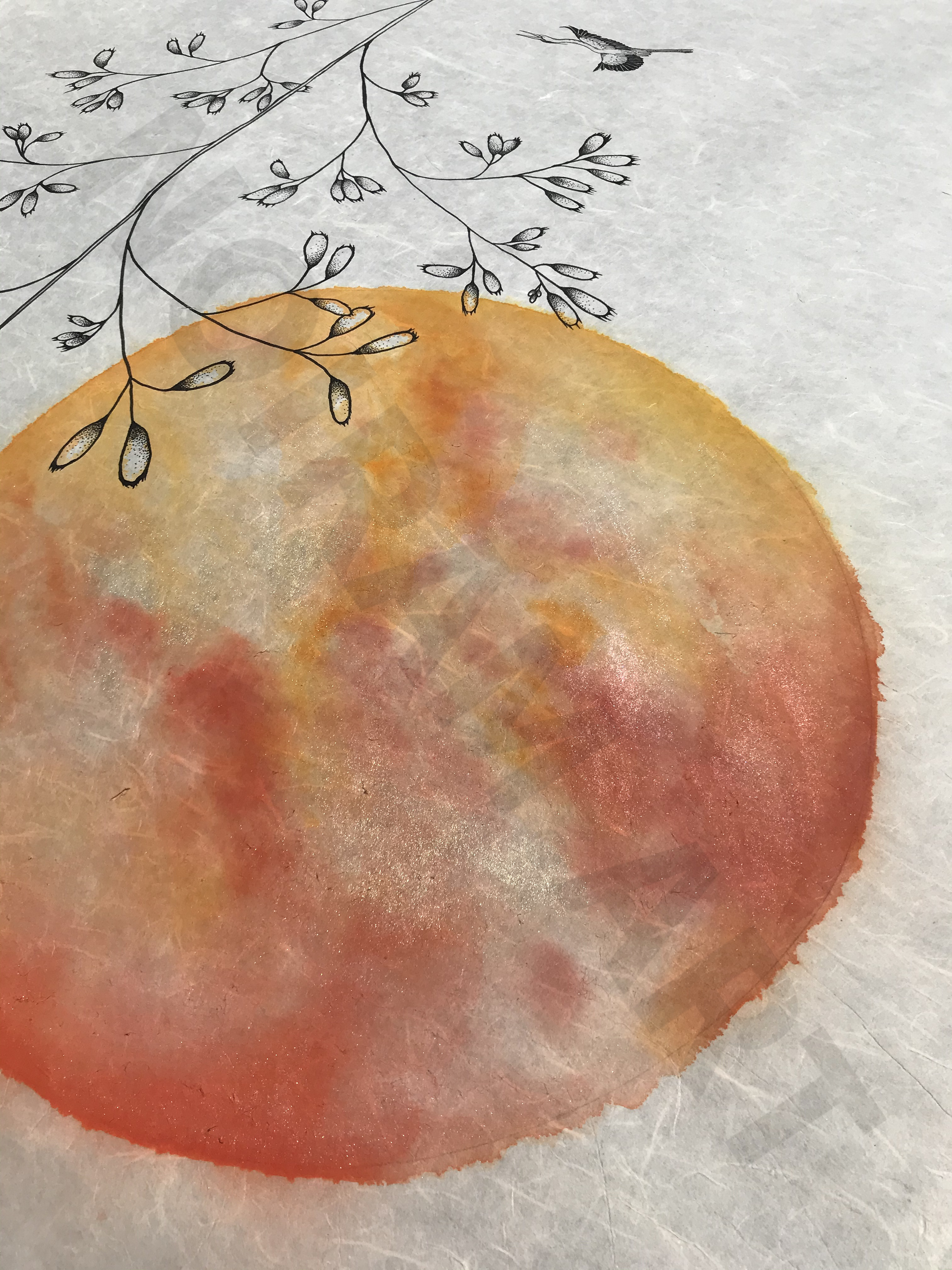 Aquarelle, stylo et acrylique sur papier japon