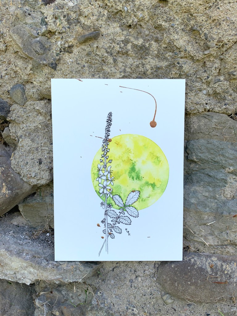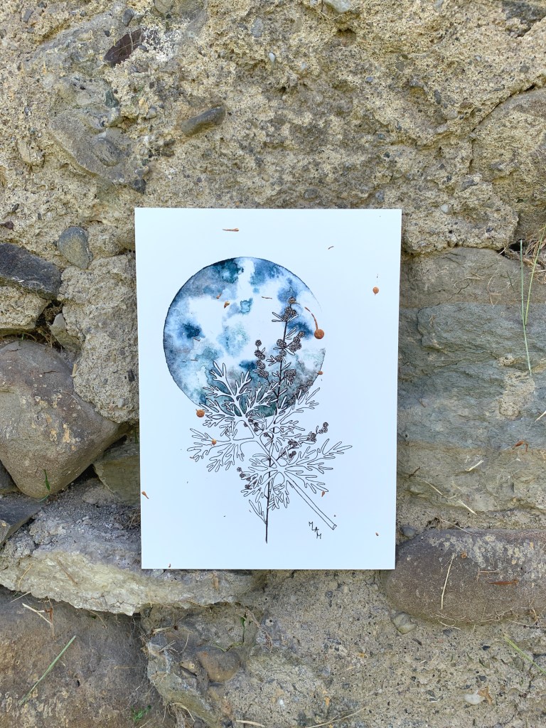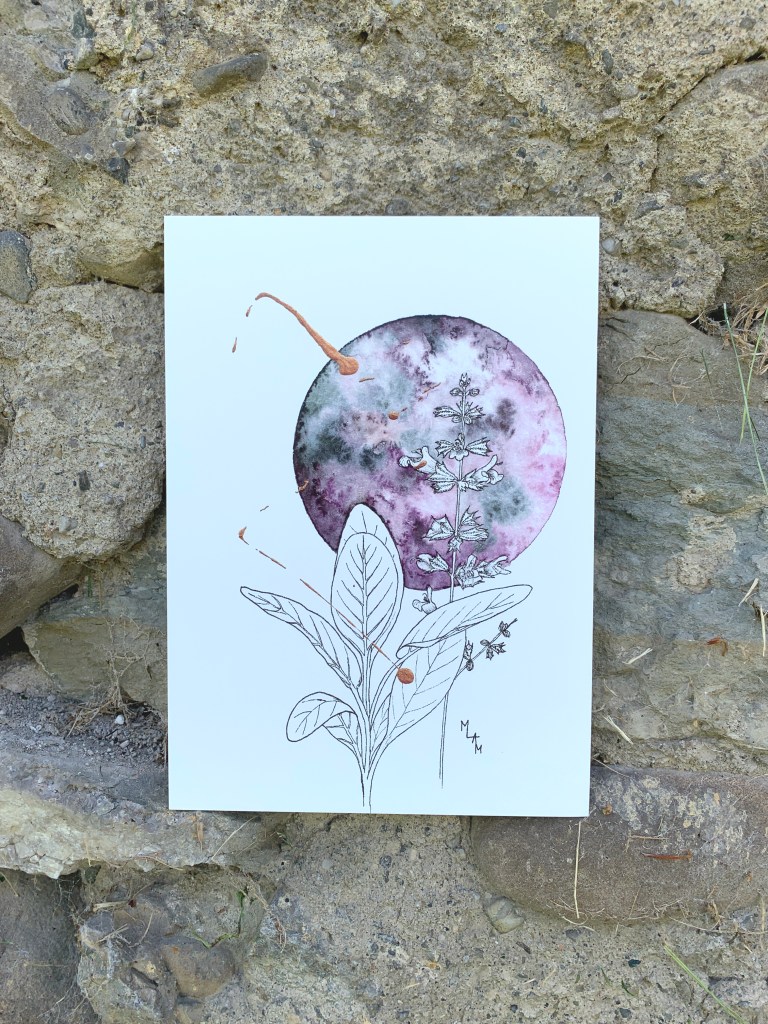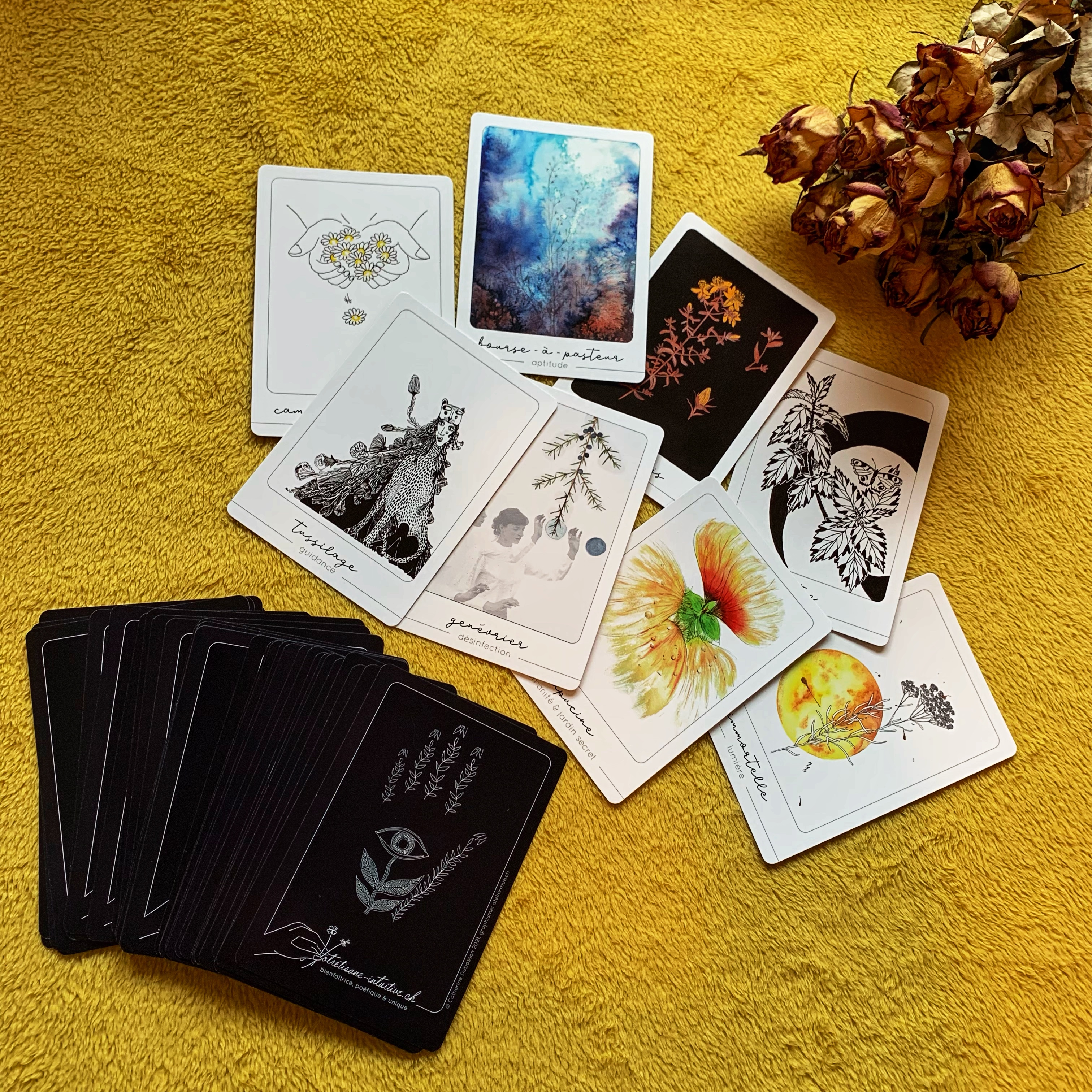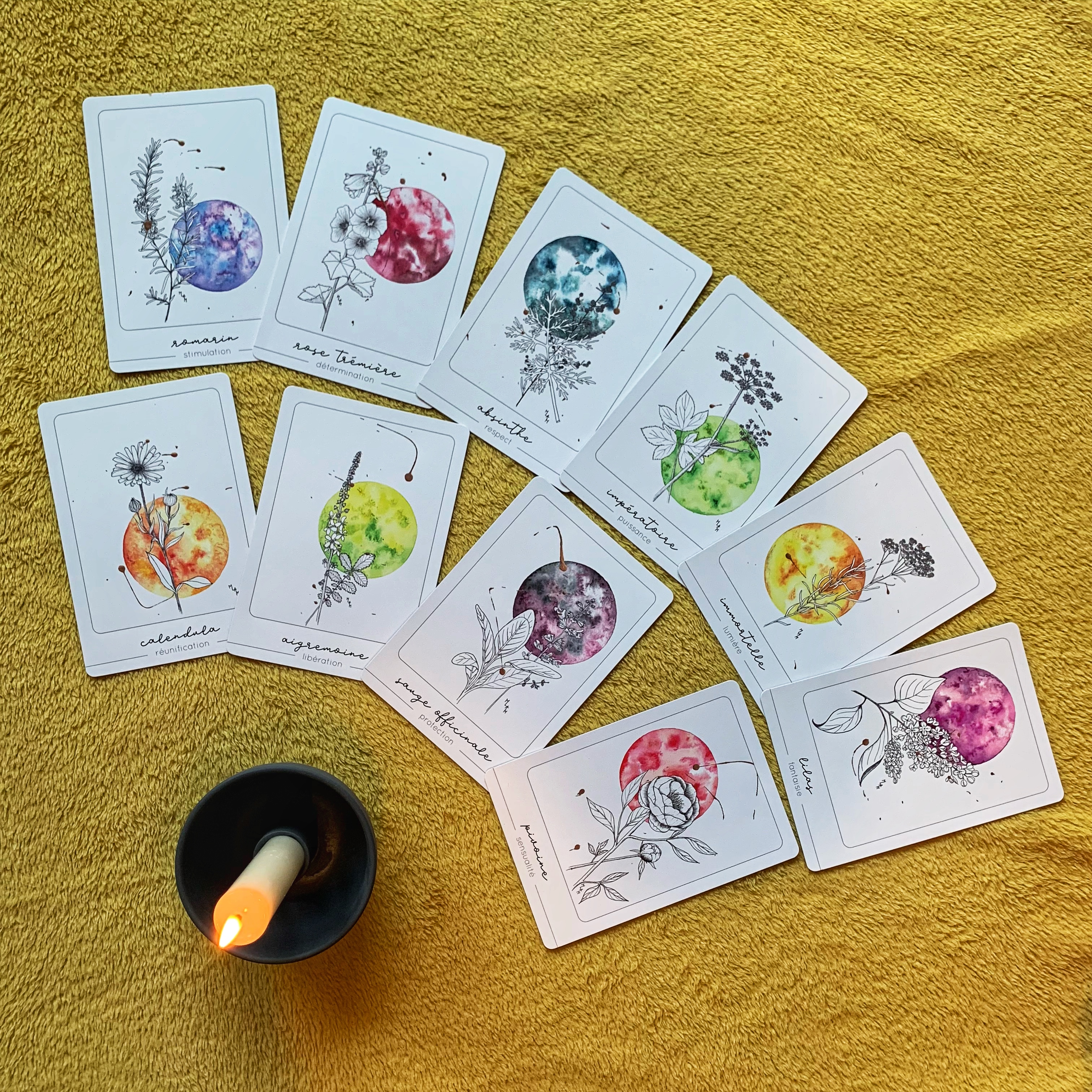 Je fais partie des 9 artistes participants au magnifique projet d’oracle de Catherine Dubosson. Il est contient de 79 cartes pour composé votre tisane-intuitive et un livret sur les vertus de plantes et leur message caché.