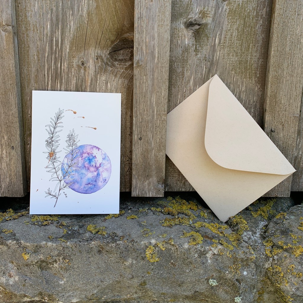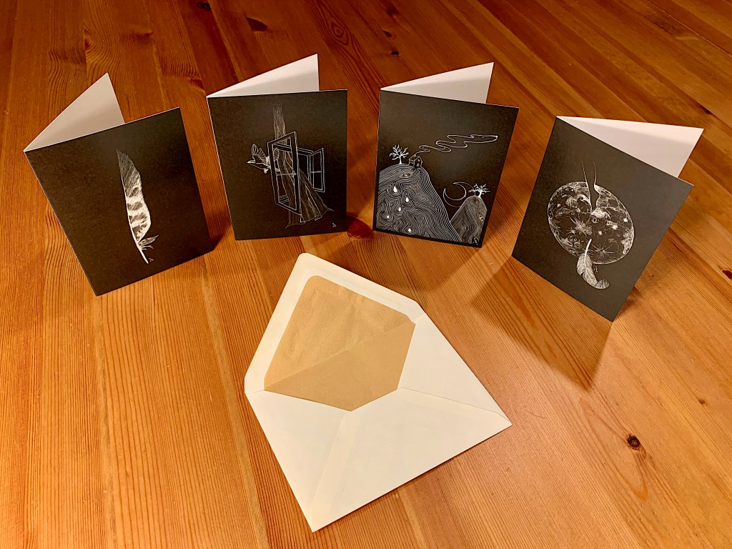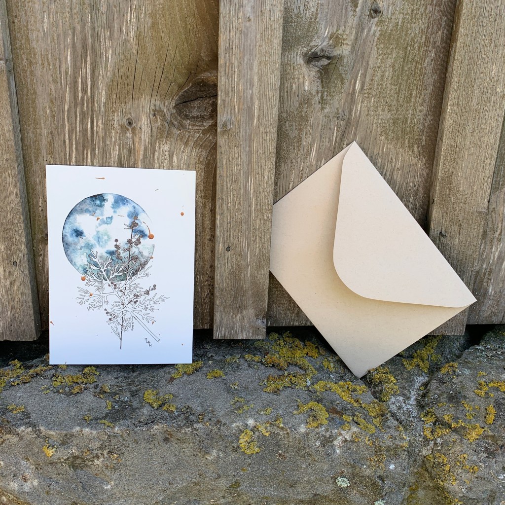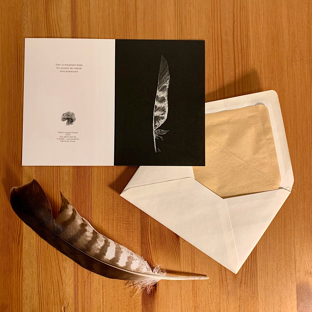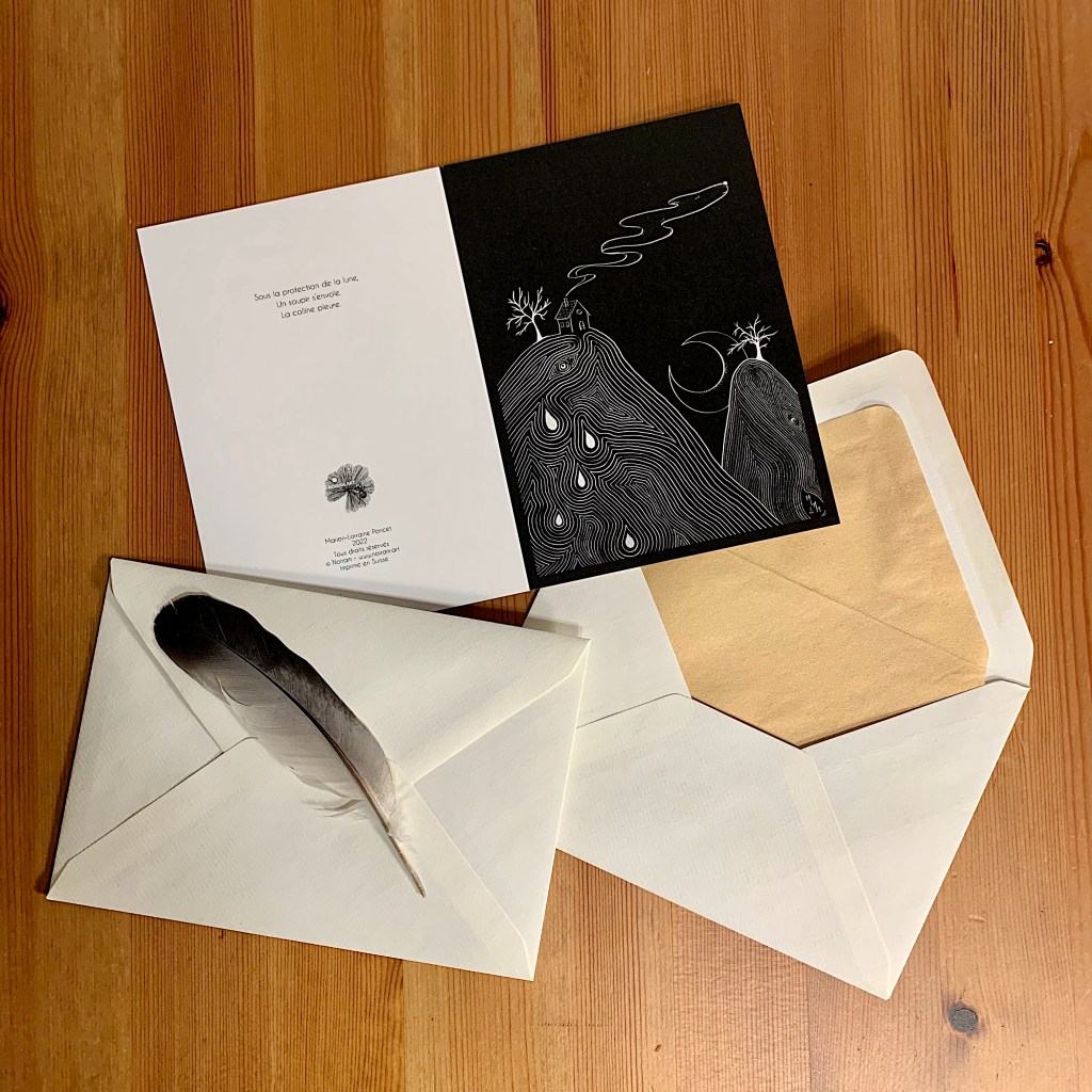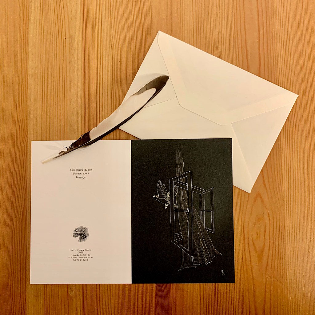 Les cartes ont les dimensions de 12.7 x 17.8 cm et le verso est vierge. Elles sont fournies avec une enveloppe. Vous pouvez les acheter à la pièce (6.50 CHF) ou par paquet de 6 (32 CHF).