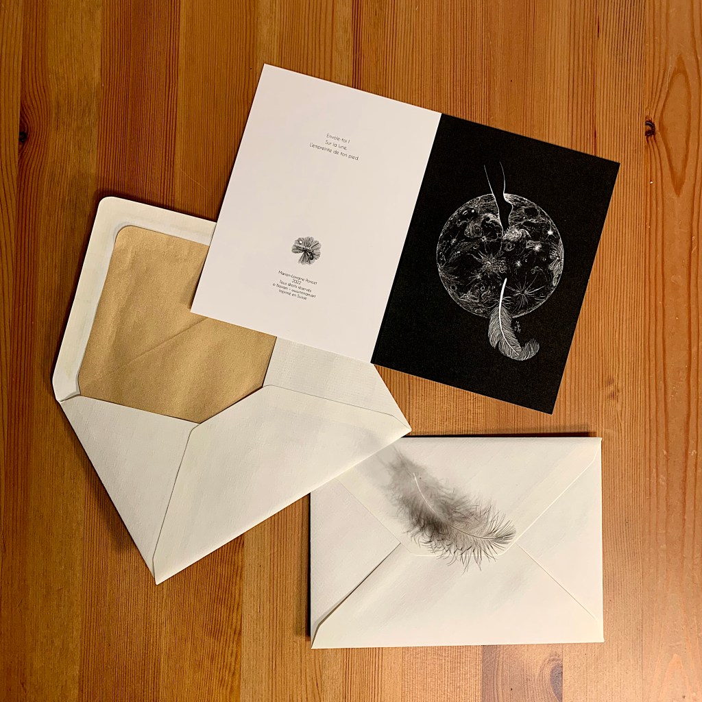 Au dos de chaque carte est inscrit un haïku écrit par l’artiste.