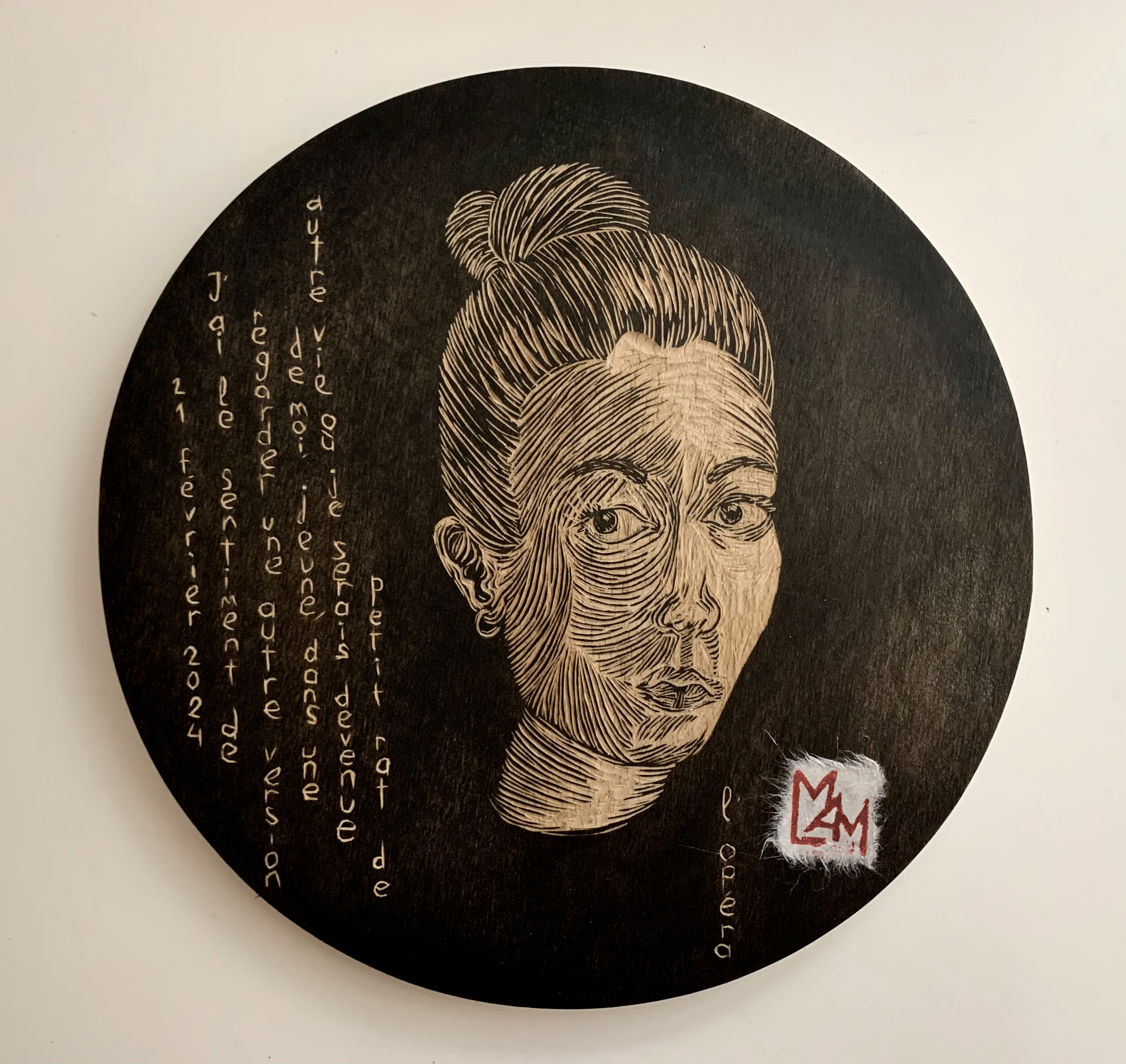 Autoportrait du 21 février 2024 Autoportrait du 21 février 2024 mai 2024 Gravure sur bois (Hêtre), ⌀ 22 cm J’aime chargement…