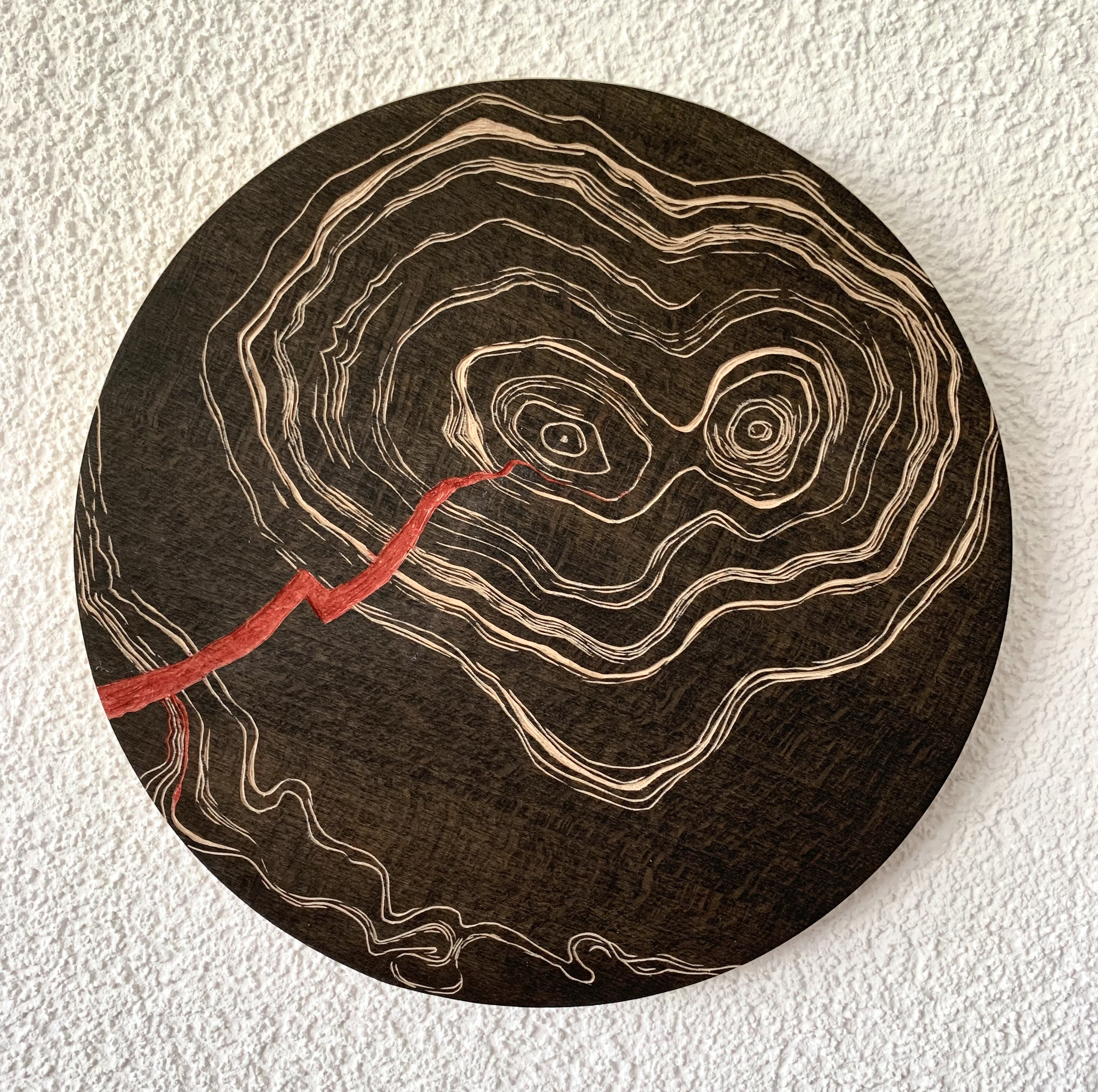 Fulguration mai 2024 Gravure sur bois (Hêtre), ⌀ 22 cm