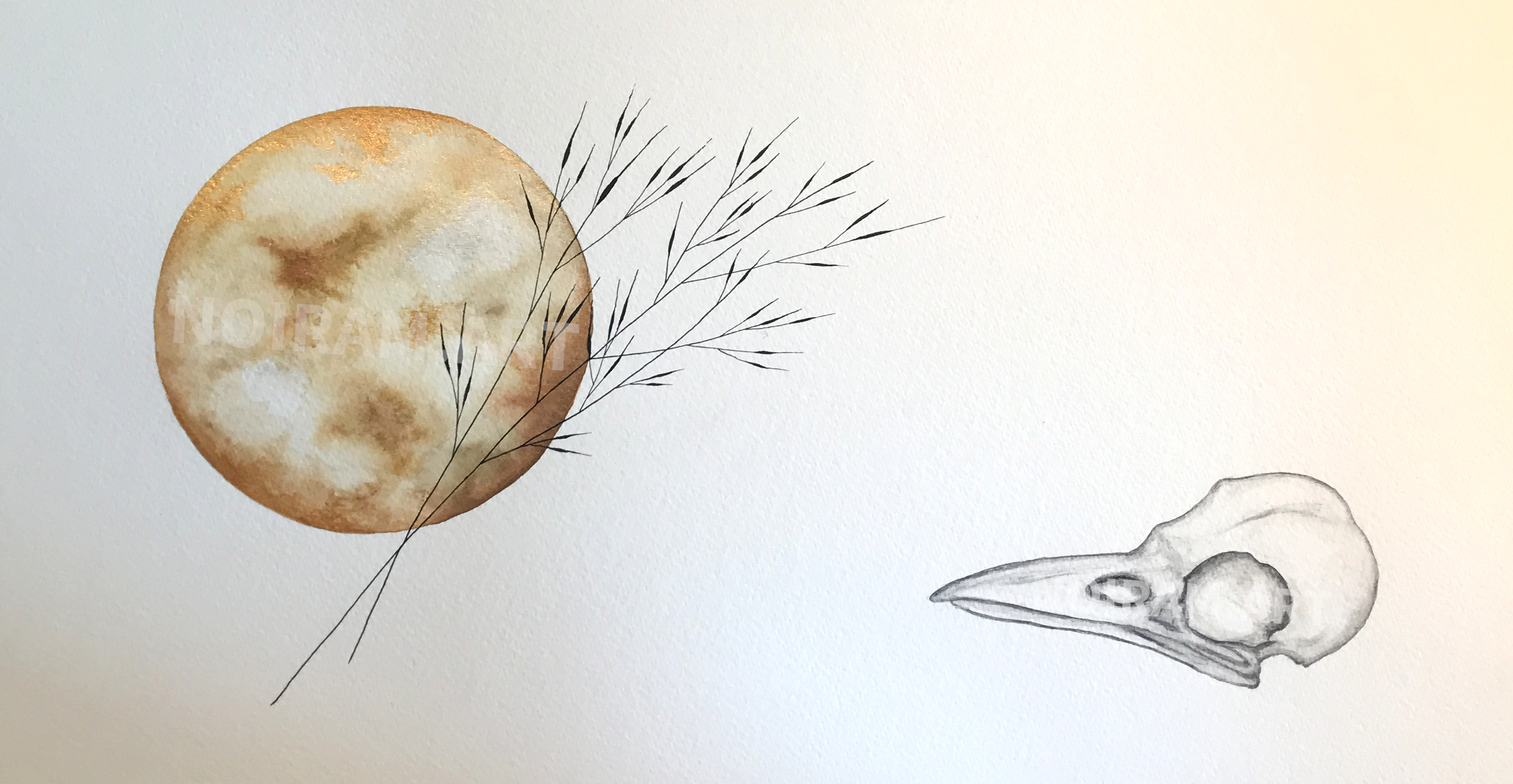Aquarelle, crayon, stylo et acrylique sur papier aquarelle